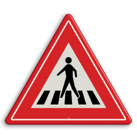 Opgelet! pas je snelheid aan, je nadert een voetgangersoversteekplaats via een zebrapad. Wil er iemand oversteken dan MOET je stoppen.